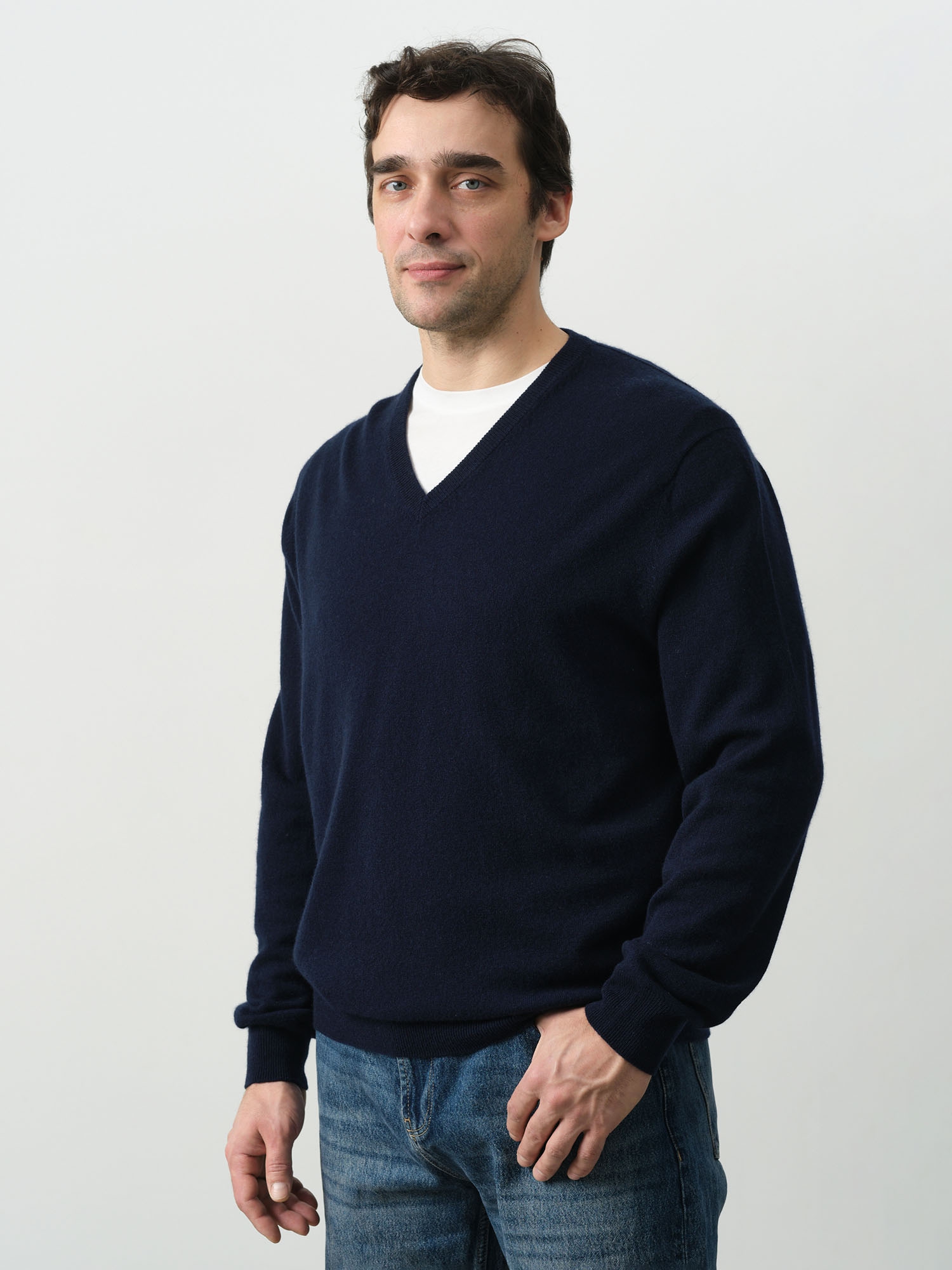 Джемпер из кашемира мужской KM070419-E темно-синий
