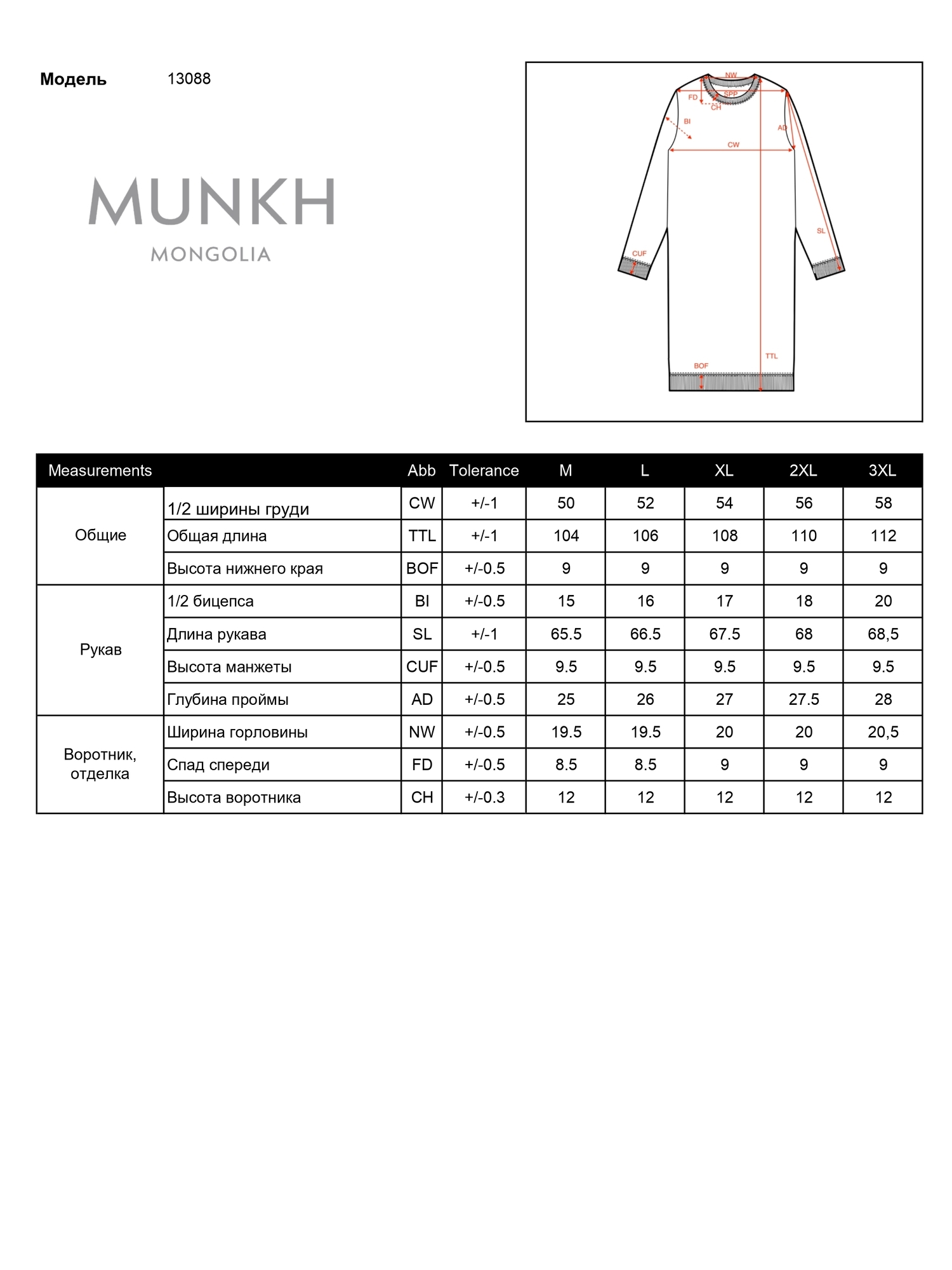 Размер на модели